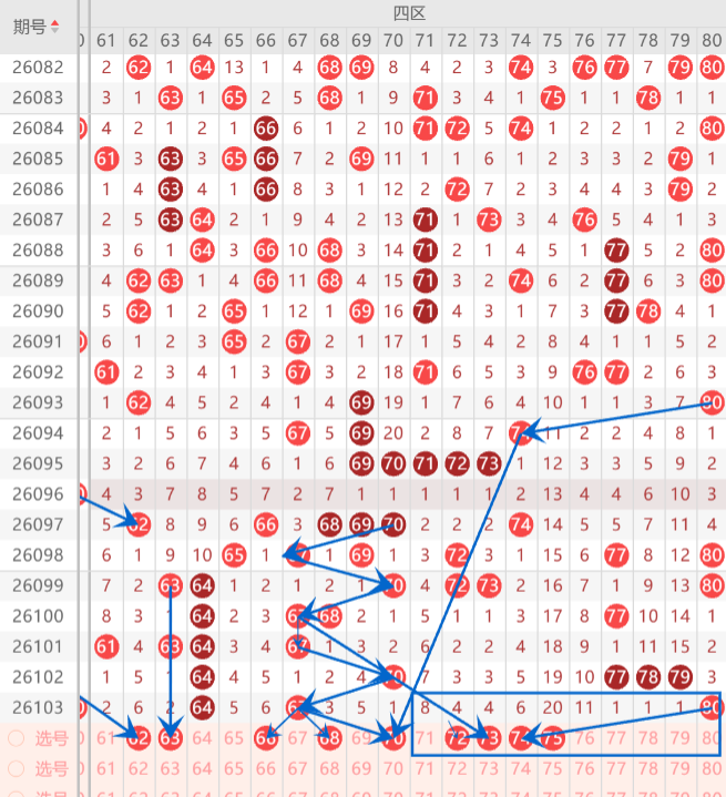 四区间关注的打底是62.63.68.70.72.73.74.79.80中参考3-4码开出机会