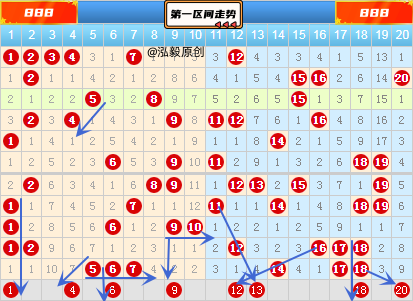 上期连号01 02没能落号下来,本期我们可以关注一下01号的落号情况。其次就是连号05 06 07的落号情况,05本期估计是重不了了,我们就主看06 07落一码吧。连号09 10我们也可以注意防守一下它的落号情况。其次就是16 17 18号这里,本期我们要防守一下18号出3重号,17号估计是出不来了。20号我们也可以关注一下,如果18号出不来,20号就有机会出来的。