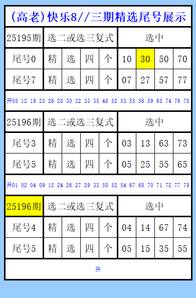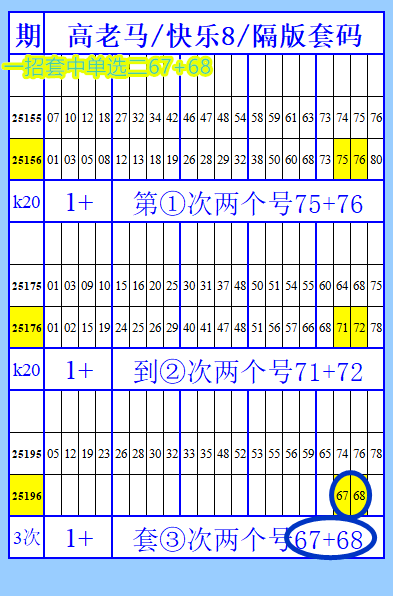 快乐8第197期图文(高老马),精选尾号推荐,视频上期一招套中单选二67+68