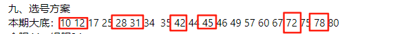 首先看上期开奖号码:03 10 12 28 29 31 42 45 47 48 55 56 62 65 72 74 76 77 78 79.上期大底命中8码等