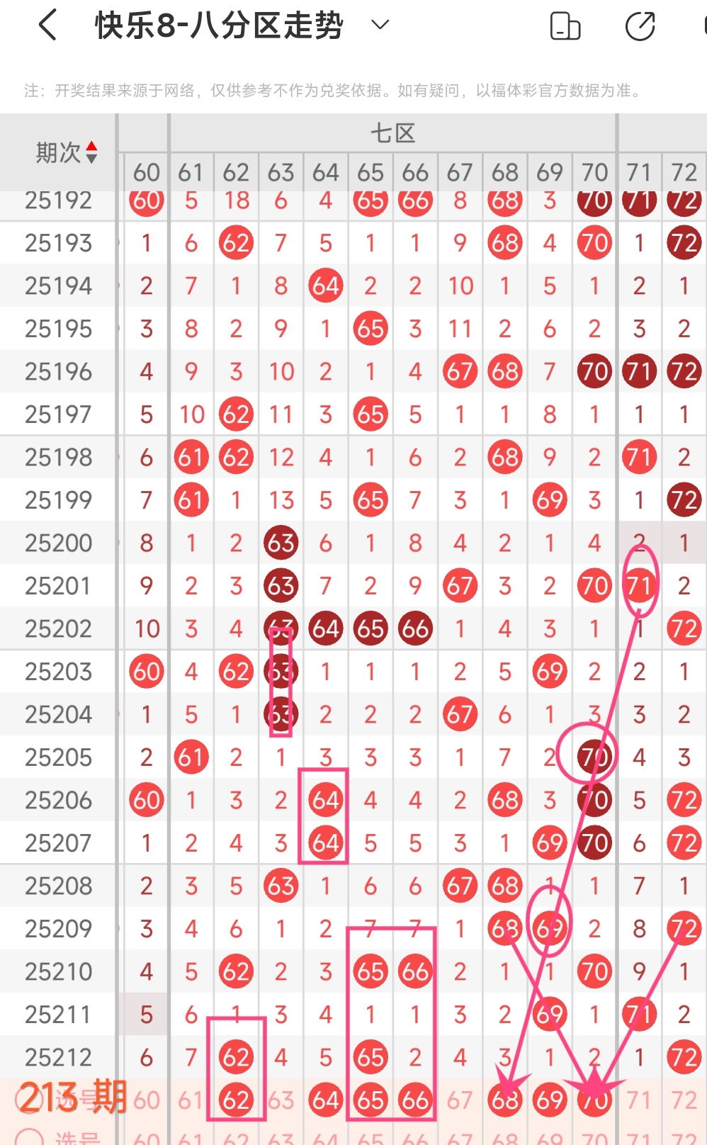 上期七区开出62 65这2个号码,本期考虑出2个左右。