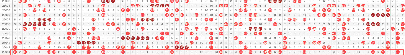 01-10区间:包含03-10共8个号码,形成密集的低区覆盖
