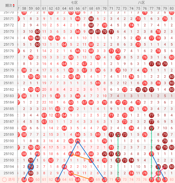 结合上期的数据分析,对快乐8第25196期的推荐如下: