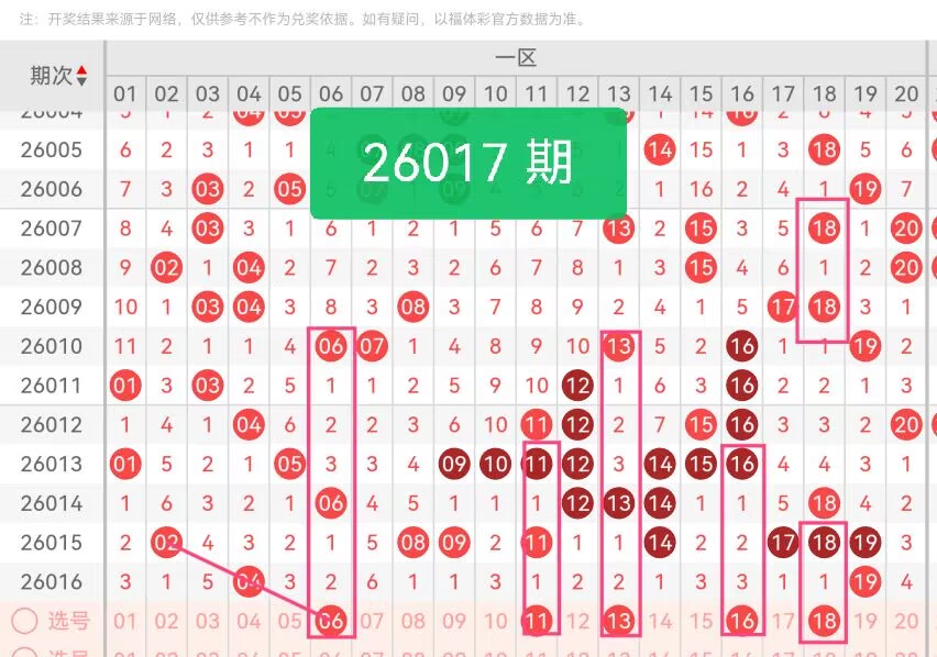 第一区间号码推荐:【06 11 13 16 18】