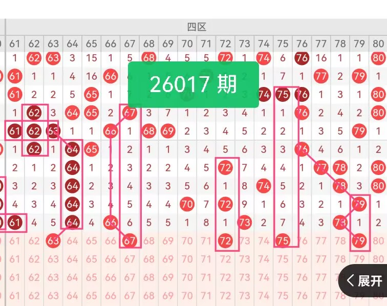 上期第四区间开奖4个号码,本期有望稳定开出。63、67作为奇数补位号码,与上期61形成奇数递进,且在历史数据中,60-70区间的奇数出号频率较高;72、75、79则覆盖70-80区间,72、79为偶数热号,曾多次在相邻期数中出现,75作为区间中部的奇数,能增强组合的均衡性。前期开出的号码64带动斜连号码63的车互相,前期开出的号码66带动斜连号码67的出现,前期开出的号码73带动斜连号码72的出现,前期开出的号码78带动斜连号码79的出现,这几个号码在形态上都呈现斜连走势,可重点关注一下哦。
