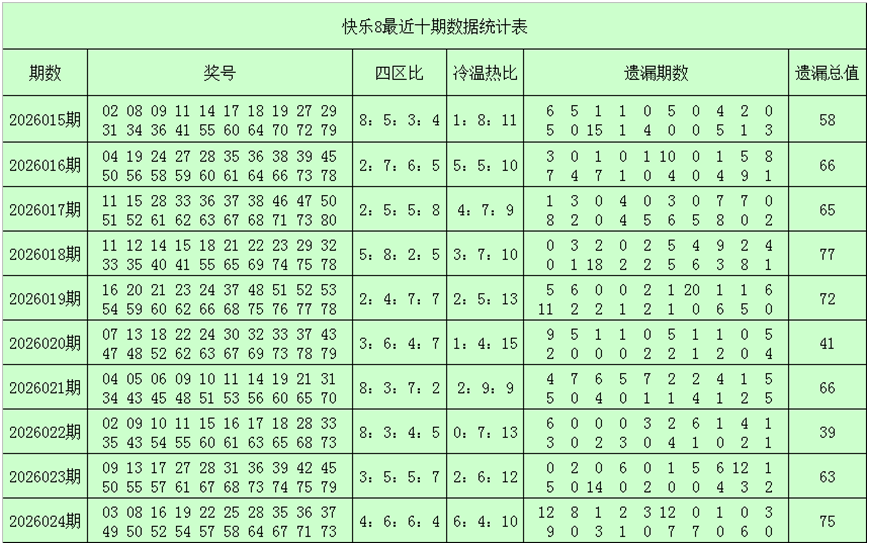 一、快乐8第2026025期奖号分析(定义:遗漏0-2期号码为热码,遗漏3-6期号码为温码,遗漏7期及7期以上号码为冷码,重码为上期开出奖号,邻码为上期没有出现,但与上期奖号差值为1的号码,例如上期开出奖号04,没有出现号码03和05,则本期03和05都为邻码,其它则为孤码。