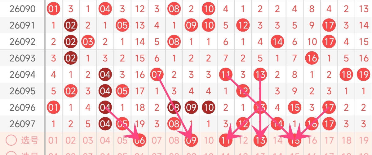首先来看一区。第一区间是号码池的起步段, 上期开出了04、05、08、12、14、16、17,一共7个号码,是四个区间中出号最多的区块,明显偏热。从近期走势来看,低区整体出号波动较大,连续两期保持高位出号后,根据彩票冷热交替的规律,本期出号数量大概率会回落至理论均值附近,建议选择4-6个号码。从号码分布来看,上期低区号码集中在04-17中段,18-20区域出现断层,边缘号码的回补需求较强,可以重点关注。而且还需注意其他已经连续多期漏出的号码,本期有几率回补综合考虑,本期一区推荐关注号码:06、09、11、13、15