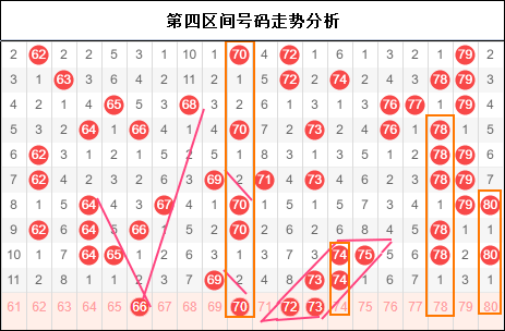 第四区间思路:四区走势交替,开始出现弱化转移,前期的堆积号码开始分解且区间个数骤减。中间热两头冷的走势是我们常见的一种分化,那这种分化之下实际上是需要观察等待周期的,但显然对于我们当期的分析看来是相当不利,所以我们不妨大胆假设,依据当前走势在区间的变换,四区在这一期显然是有可能回暖的。如果是的花那是不是意味着给后半部分是会再次体现出其价值的。所以用心分析一下,也许真的会是这样的走势。