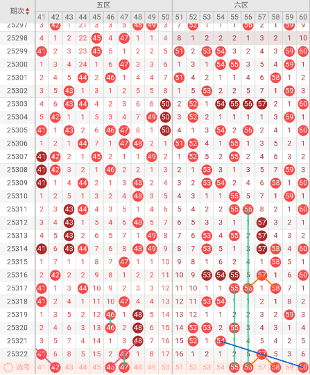五区开出:41 47 奇偶比: 2:0 和值:88 跨度:6,上期开出2个号码,奇数号码占优势。本期三斜连走势:42 46,无隔码斜连走势。近10期平均出2枚,本期推荐关注号码:42、46。