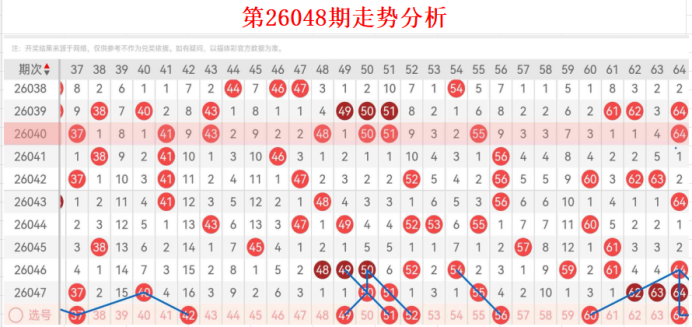 · 理由:02、37、49、64均为近期高频热号,覆盖四个区间(02属01-20,37属21-40,49属41-60,64属61-80),强势出击,稳定性高。