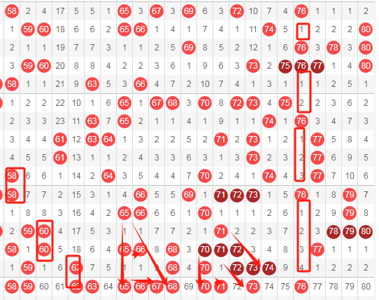今日七区建议参考62重号,防62 63对子号开出,六区后区建议参考65 66 67斜连金字塔,防68重,今日八区建议参考70重号,建议参考71的梅花号形态,防70 71对子号开出,建议参考73的对等斜连,八区后区建议参考76的不规则遗漏1-2-3-4递增。今日七区八区推荐号码62 63 65 66 67 68 70 71 73 76