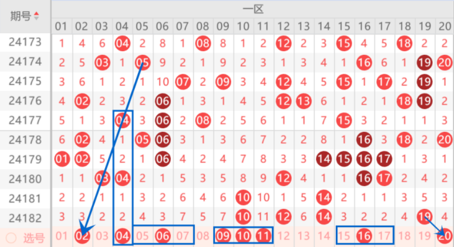本期的阶梯连号01 02和03 04号数字本期落下号码的机会是很大的,尤其是其中的01 02号数字出一个号码的机会很大,本期这里我们重点关注一下02 04号数字的出号情况。本期的05 06 07号数字本期我们注意一下出一个号码的情况,重点关注一下05 06号数字的出号情况。上期开出了10 12 14号数字,而且上期的10号数字是属于重号,那么本期的08 09号数字我们号数字我们要重点关注一下出一个号码的情况。本期的15 16 17号数字我们也是要注意出一个号码的情况,属于重号边号回补号码。本期的20号数字我们重点关注一下出号情况,上期开出了19号数字,本期走分边的情况很大。