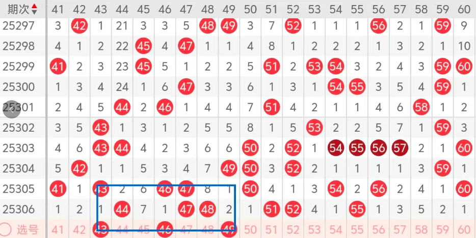 第三区间的走势分析:第三区间上期开出了六个号码球,主要的落号点位在三区间的前后半区,走出了三奇三偶的形态走势,上期三区间的前半区落下一个冷码和一个姊妹对号码的落位,后半区也落下一格夹码和姊妹对号码的落位,整体处于走热的趋势,根据三区间的走势规律今天的三区间主看前半区对称形态的落位,也是边码的回补,主看43 46 49这三个号码球组合的落位,走出了0路尾号的走势,这三个号码球建议大家打个三胆拖,或者三码复二,参考为主!