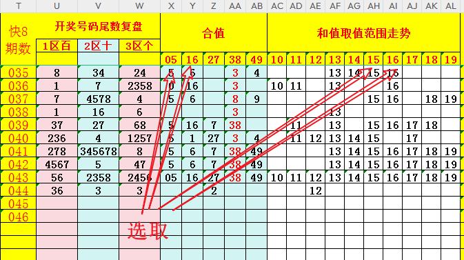 依据"1-2-3"区位开出的号码,转换"和值(取值范围10-19)与合值(0-9)"进行综合研判。