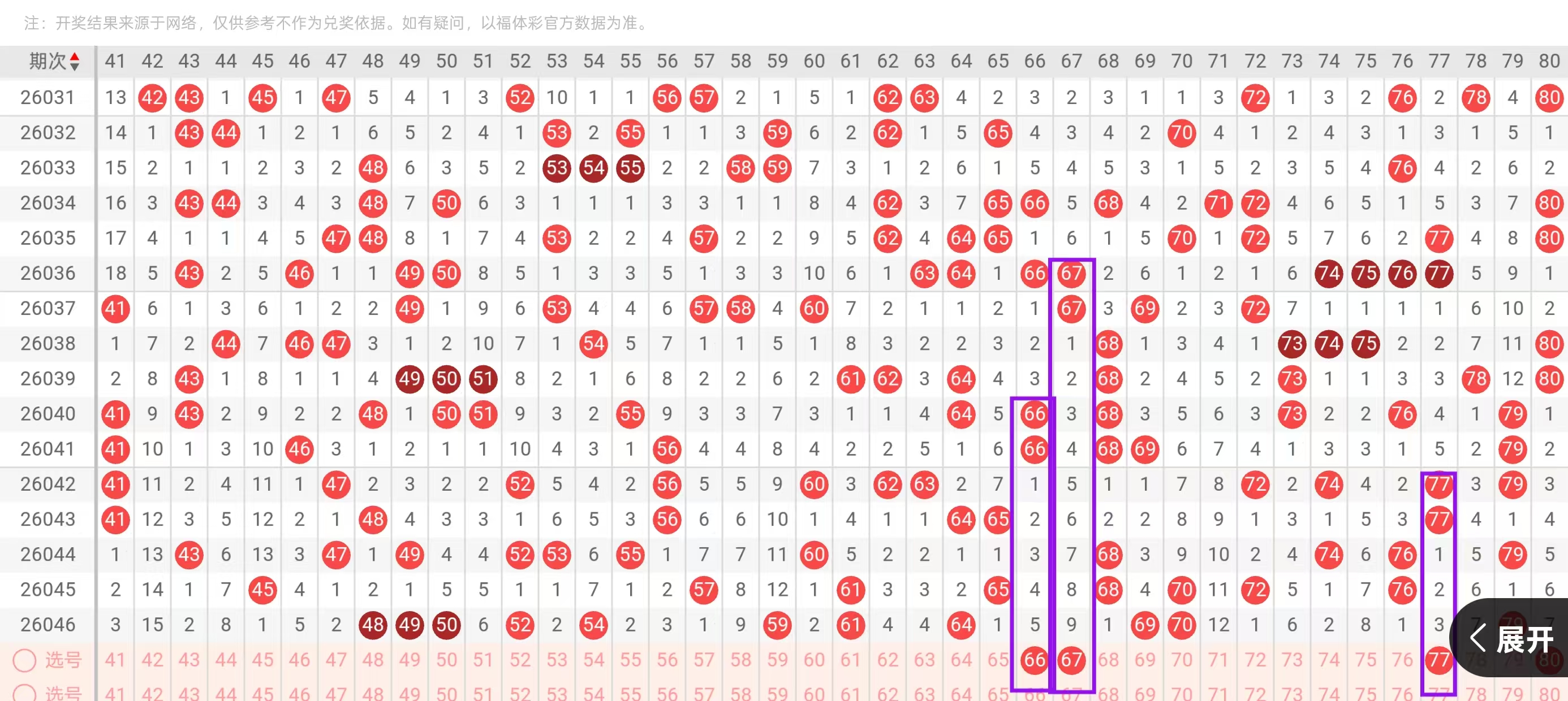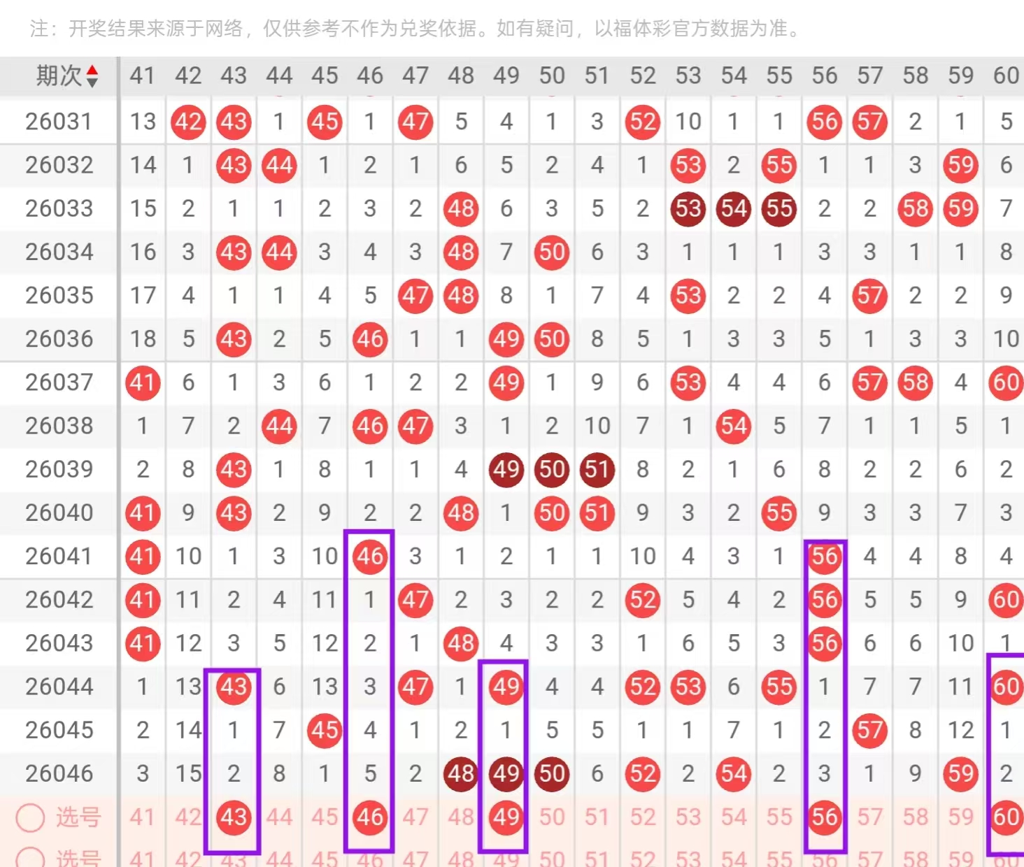 三区41-60:三区间,上一期出现了大面积的回补,总体回补了6个号码的下落,从近期三区间号码下落点位来看,呈现出了由冷转热的形态,今天我们要重点关注的是三区间重码的一个下落点位,和空缺位置的回补,在四头首先我们要重点关注的是43-44的一个回补点位,和46-47的一个下落点位,今天这里可用43-46和44-49的一个搭配回补,回到五头位置,这里要重点关注的是空缺位置的下落,53-56的一个回补点位值得我们重点关注,其次在尾部位置要重点防的是开出对子回补的可能。