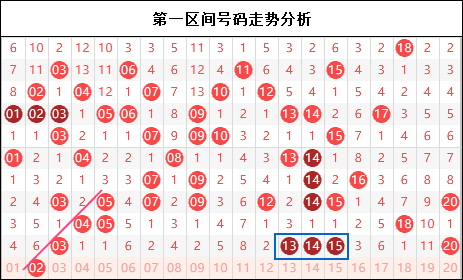 第一区间思路:一区真的是隔期回补思路,直接复制了上一期的四个号码加一个邻号的走势,而且形成了三连号。按照这个思路本期理应是要关注空白取值了,但是整体考虑近期重号走弱的趋向,那么本期重号能不能仔五码中产生,是一个值得我们考虑的问题。另外就是连号之下如果放空,那重号思路相对简单一些,就是03和20了。而按照这两个号码本身的形态来看,显然大家都能看出是哪一个更好一点。不过空白位置回补的话,两期的走冷这里可以参照四区的位置,显然是一个区间走弱的迹象。