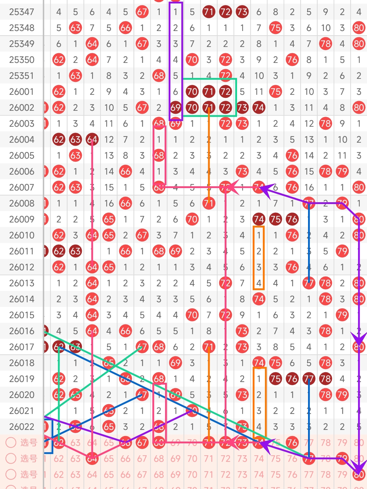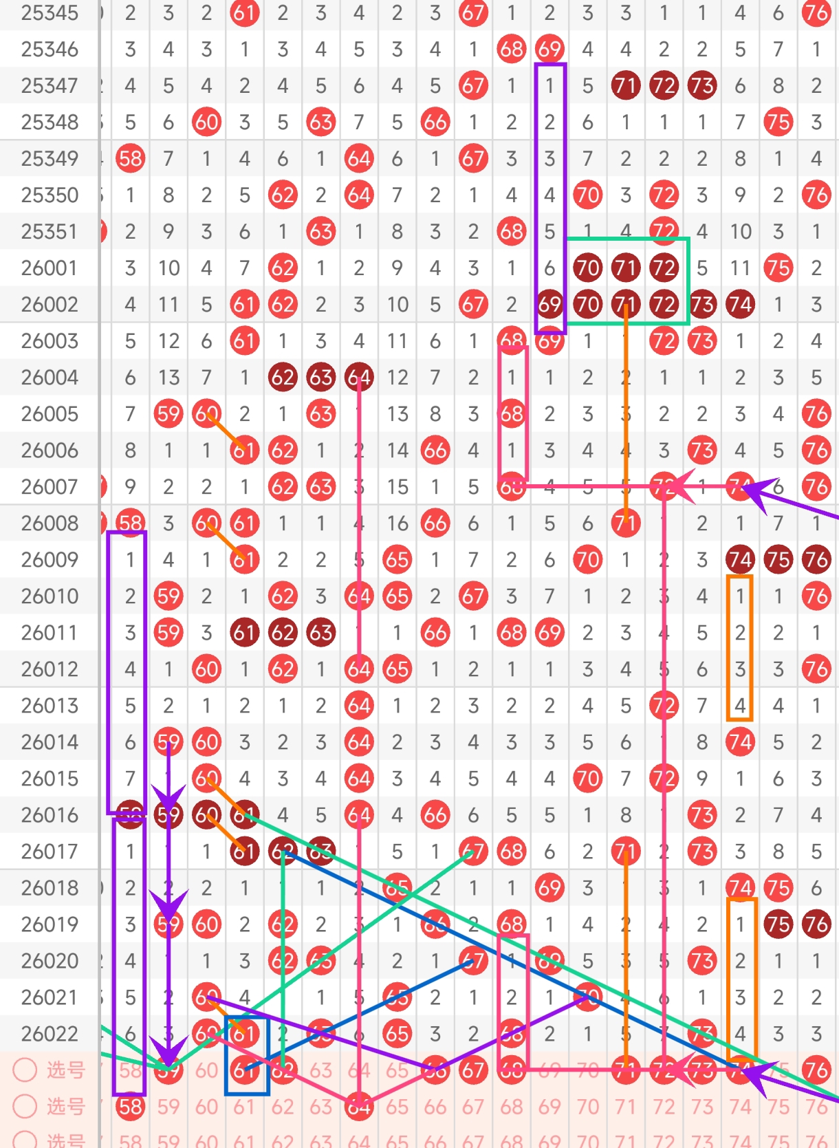 四区间上期开出五码,属于温热区间,本期考虑部分连号点位,考虑补部分号码!61、62对子码,考虑择一去做!连号点位66、67、68,属于一个补空位区间,考虑出两码左右,防复二!连号点位:71、72、73、74,本期考虑这个位置有连号趋势,考虑防一个单式或者复三!76是一个形态码落位,本期可防!