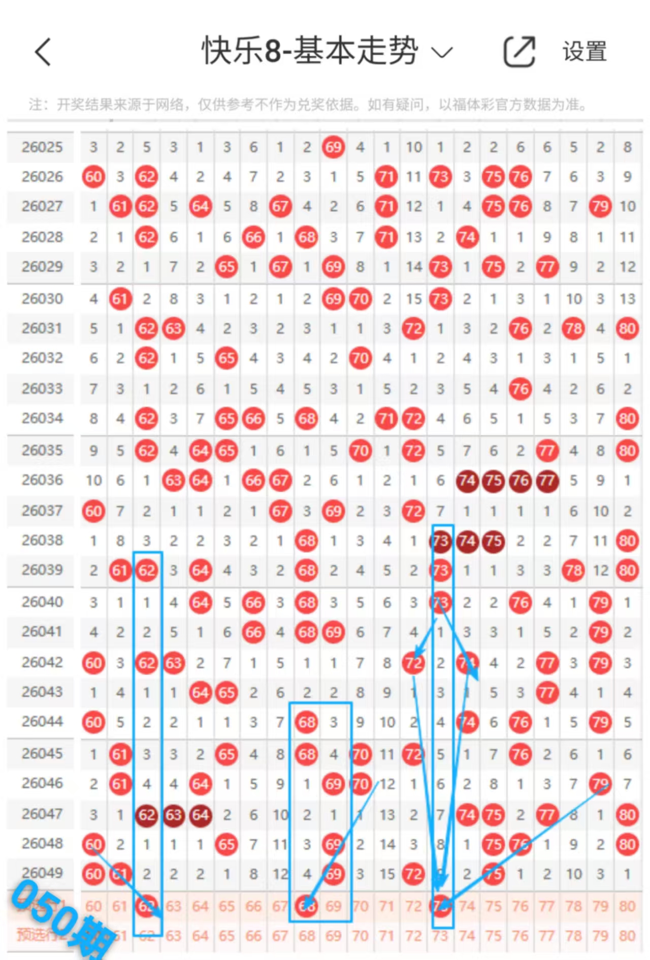 73号:这个号码本期是顺延72号对称下落的走势的,菱形四边形的对称下落的走势的。
