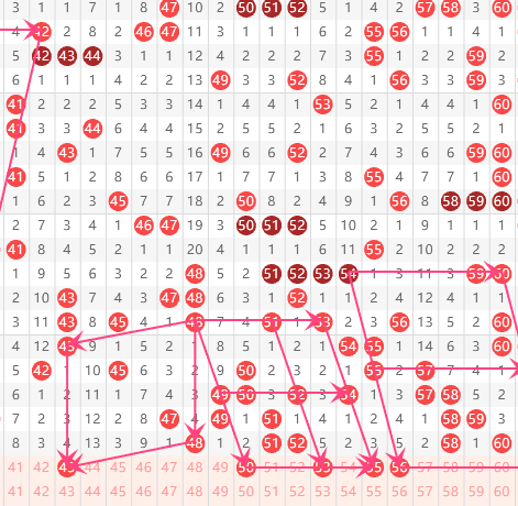 三区分析:【41-60】(走势图标注号码非小黄车大底,请谨慎参考,具体思路