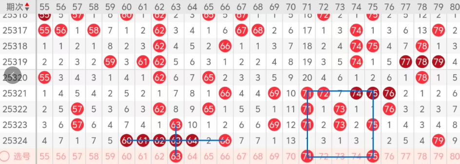 第四区间的走势分析:第四区间上期开出了六个号码球,主要的落号点位在四区间的前半区,走出了三奇三偶的形态走势,上期四区间的前半区落下了五个号码球,后半区落下了一个号码球,整个四区间处于走热的趋势,根据四区间的走势规律,今天的四区间我们主看63 71 75这几个号码球的落位,63走出了三重码的走向形态,正好形成一把剑的形状,71走出了热码隔期回补的形态走势,75走出了对称隔期回补的走势形态,这三个号球都是热码的回补,落下1码的机会很大,参考为主!