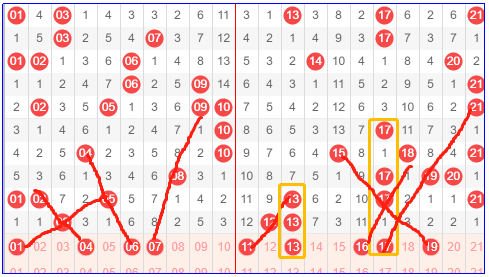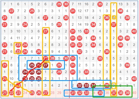 第二区间号码21-40,二区近期连号刷爆区间,走出令人意想不到的重叠号。上一期明显是回到了二区的后半段,这一期如果作号不妨参照前面走出的连号参考,当然完全重叠的这种机会真的是太少了。但这不妨碍连号走势上带上前面或者后面的一些号码。