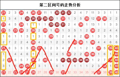 第一区间号码01-20,猝不及防的,一区号码就这样连冷带热一起走了出来。在四连号出现之后,大家思考的方向上要注意了,究竟在这里会不会还出现隔一期冷掉的情况。335期出现大面积连号之后忽然冷掉,现在再一次面临这个走势,这里就比较耐人寻味了。从整个区间图上来看,目前形成的方向是以跳空隔开号为主,但毫无疑问的冷号依旧是占据了主要盘面。