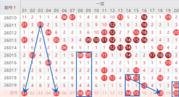 下图为01-20号数字区间走势分析图: