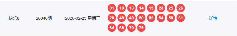 1、开奖号码:01 10 13 14 15 23 25 26 28 48 49 50 52 54 59 61 64 69 70 79