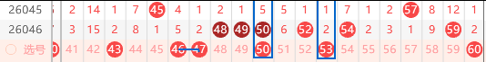 三区选号大底:43 46 47 50 53 60