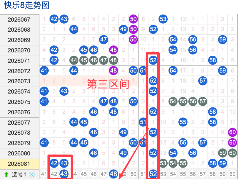 三区间开出了7个奖号(42.43.53.54.55.58.59)上期回顾三区开出7个奖号上期的三区间的奖号数量呈现一个不变的形态,4头开出2个号码,本期先来看号码43期出现频率相对来说还是很稳定。偶尔有时间隔期数也是很长,但是在近期的开奖中较热,号码48在近 30 期内出现次数相对较稳定的号码,近期的活跃度也是较热。号码52有一定的间歇性,通常间隔5-3期会出现一次,没有明显的连续出现态势,走势相对还是很稳定,在整个第三区间的表现较热本期还是可以防守的。号码57走势相对近期较温热,近期没有连续间隔落号的情况,活跃度近期处于温热状态注意防守。