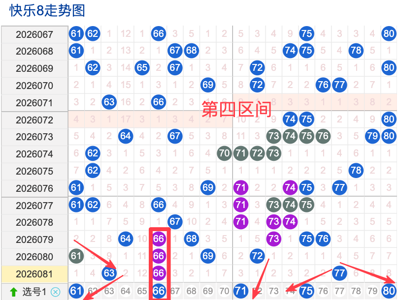 上期四区间开出了3个奖号(63.66.77)上期的四区开3个奖号呈现了一个递减趋势,开出的奖号6头回补2码,7头回补1码,先来看号码61在近 30 期内属于还是稳定的号码,近期出现频率相对热,偶尔会间隔多期后出现一次,这个号码要注意防守,号码66具有一定的间歇性近期活跃度还是很稳定比如有时会间隔3到8期就再次出现,有时会间隔多期,近期整体出现频率比较热,近期还是要关注的.号码75活跃度近期比较热,有一定的间歇性,整体走势有一定的波动性.