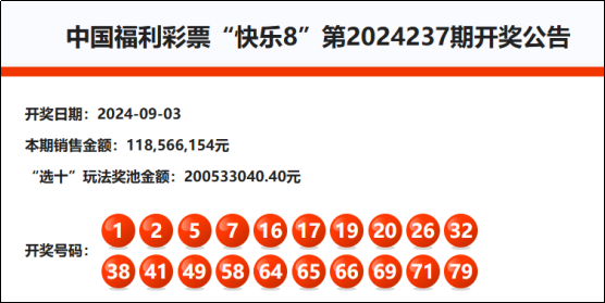 首先我们先来回顾快乐8第2024237期开奖号码:
