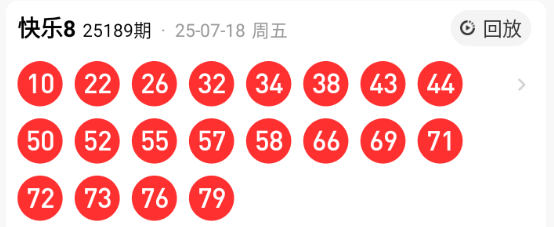 福彩快乐8第2025189期开奖结果: