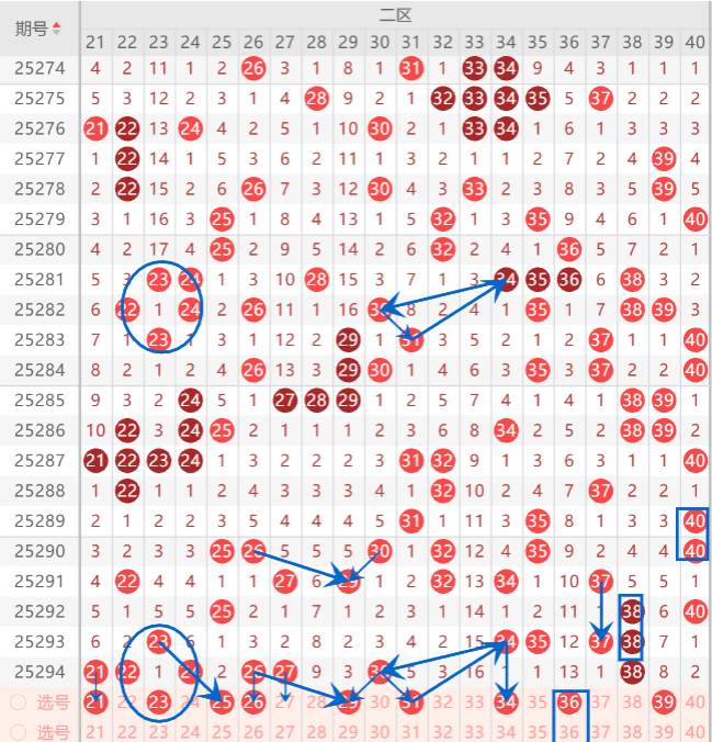 二区间注意参考的号是21.22.23.25.26.32.28.35.36.40中关注3-4码开出机会。
