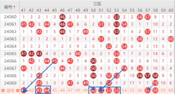 下图为41-60号数字区间走势分析图: