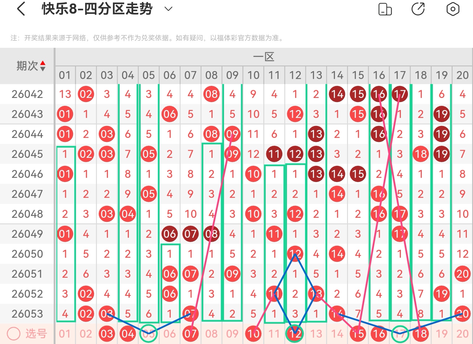 快乐八第26054期基本走势分析(上期会员文章金胆正确,选二守号中一组)