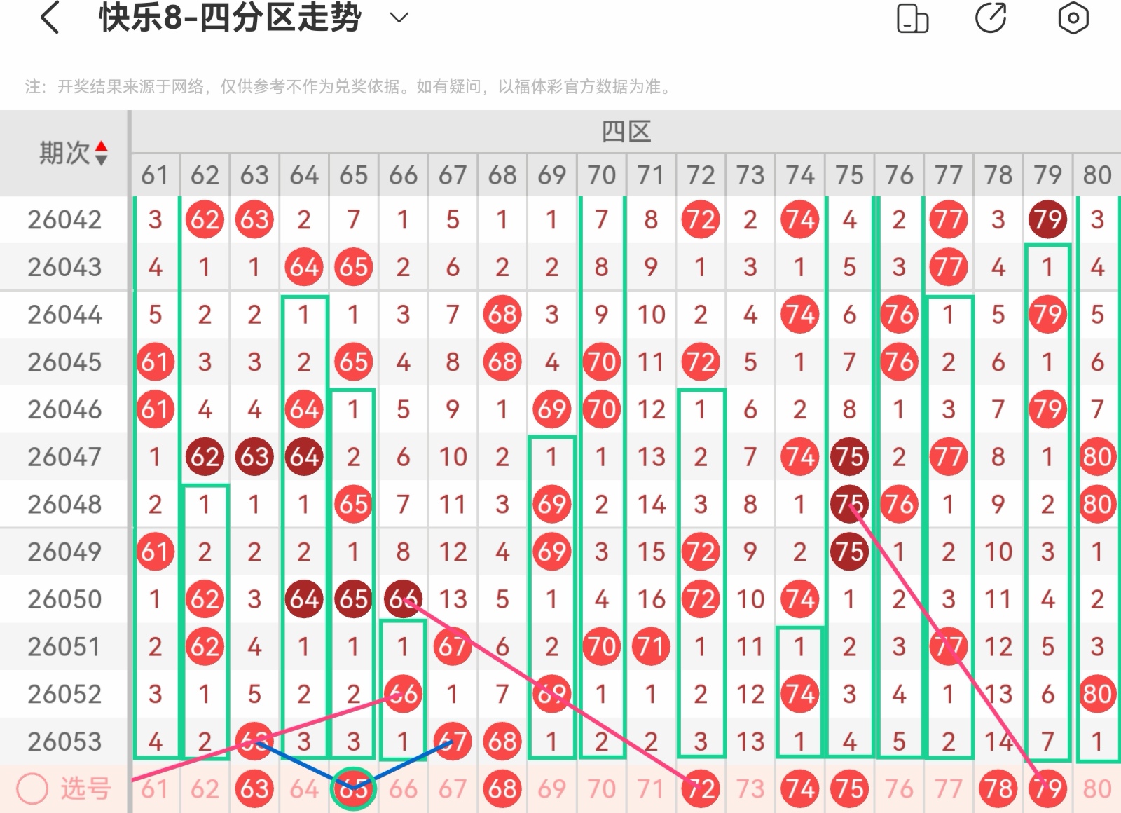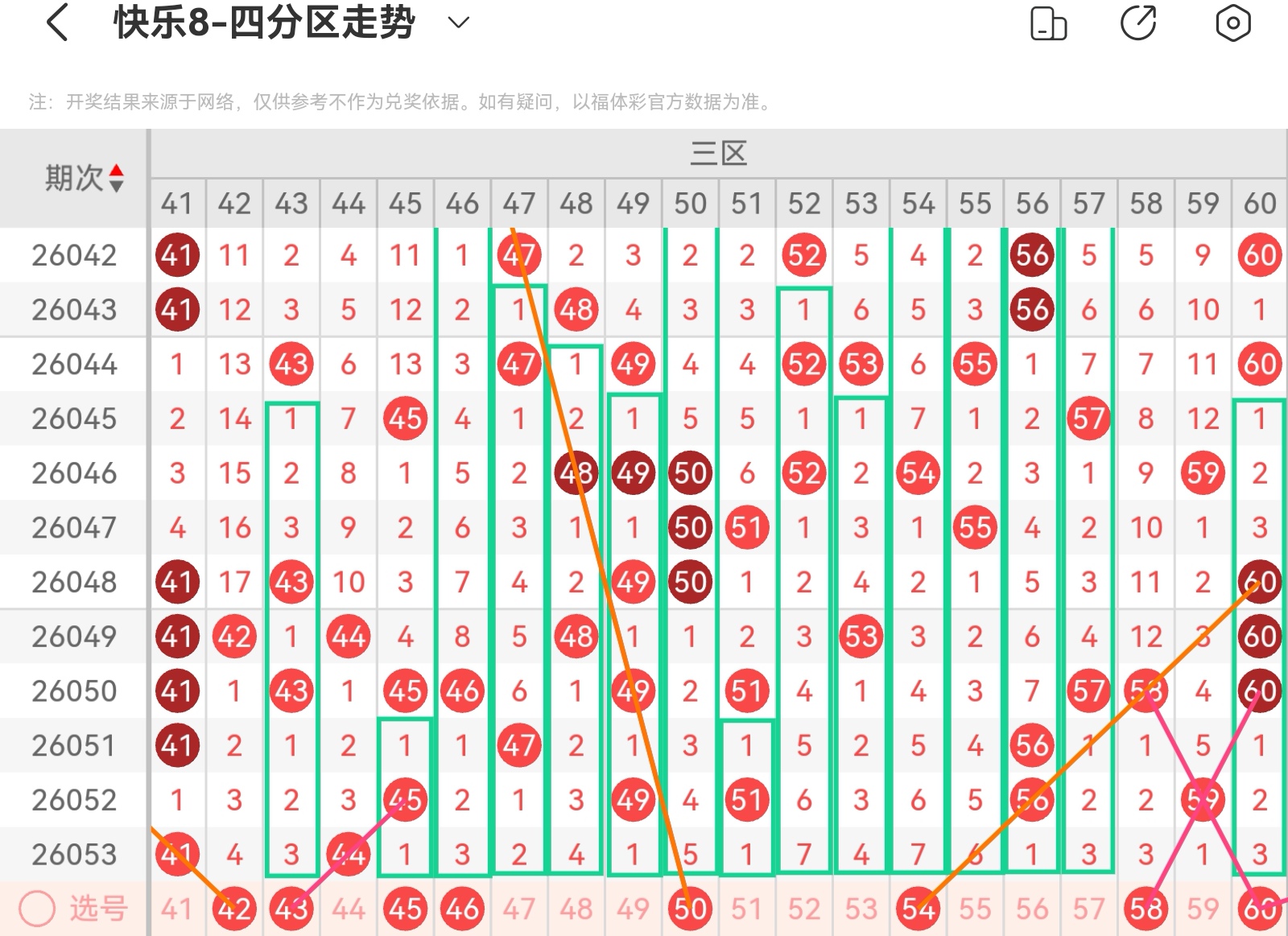 下面我为大家分享一下快乐八第26054基本走势分析: