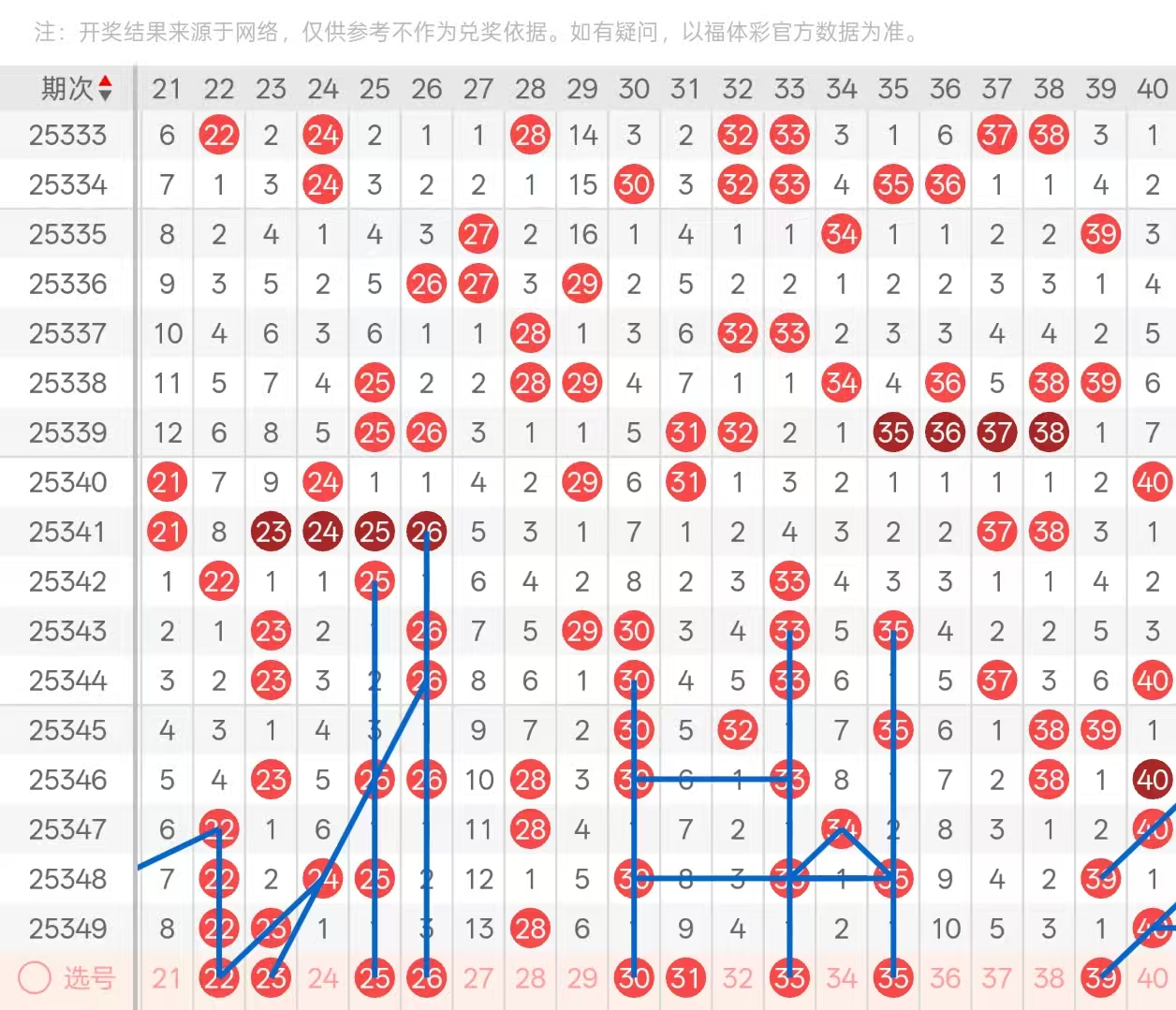 二区:上期二区间开出了七码,2字头头部位置,给到了四期遗漏做重的22,以及六期遗漏下落的24,与空一回补的25以对子形态开出。尾部位置给到了三零的四重控一回部。3字头则开出空一空一的33,以及空二回补的35。尾部位置同样开出了40双重的封边,也同样是空二开出的39。本期2字头我们需要关注2022双重的封边,21为机器遗漏号码,其次23在本期与26为同形态可做二选一,其次防守12期遗漏的27开出。22,本期可以防守走出三重,以及二四,25对子的同开,可考虑一码做出重号。尾部位置三零,以孤码形态开出,本期可防守分边。3字头本期关注33,35两码,梅花形态的两边可做成其次3440在本期属于梅花形态,可反手一码开出,中部位置关注36的九七遗漏开出在本期为全盘唯一的一个能开出五斜连的号码。其次37-38在本期可重点关注,已对此形态开出。尾部位置3941,在本期也同为二选一的号码可以防守开出。