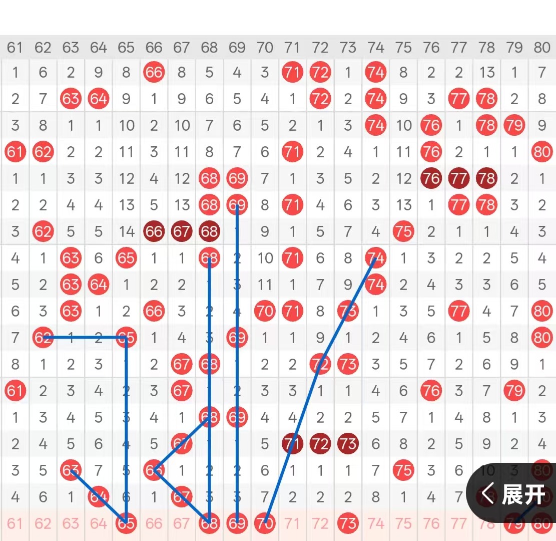 四区:四区间上期开出了四码,六字的头部位置,给到了五期遗漏下落等距五的63以及中部位置斜连号码五期遗漏下落的66。7字头则给出了中部位置八期遗漏下落的75以及尾部位置双重空四下落的八零头部位置处于放空状态,本期6字头我们可以关注到63码的分边62,64两码可二选一,其次,该位置我们需要考虑分边的时候,必须把60箱以及60两码可带出一码来。其次6366两码五期遗漏,在本期可关注一码的做成,尾部位置67,68,69三码,本期可防守1~2码开出,优先考虑67,68两码。7字头本期头部位置我们可关注到7172733码连号的空一回补,优先考虑71与73。中部位置75,以孤码形态开出。本期可关注分边号码74,其次尾部位置只需要考虑到一码80的座重即可。