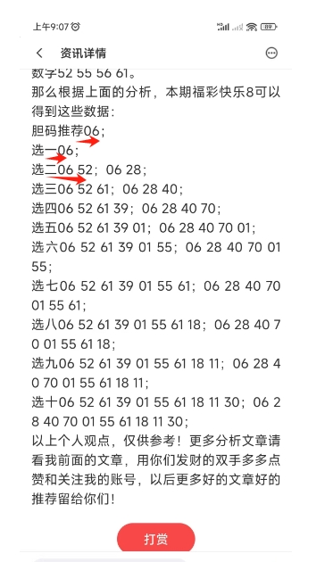 上图是福彩快乐8上期号码分析文章截图,我最后推荐的胆码,选一,选二都正确,这个你们去看上期的号码分析文章吧。