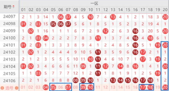 下图为01-20号数字区间走势分析图: