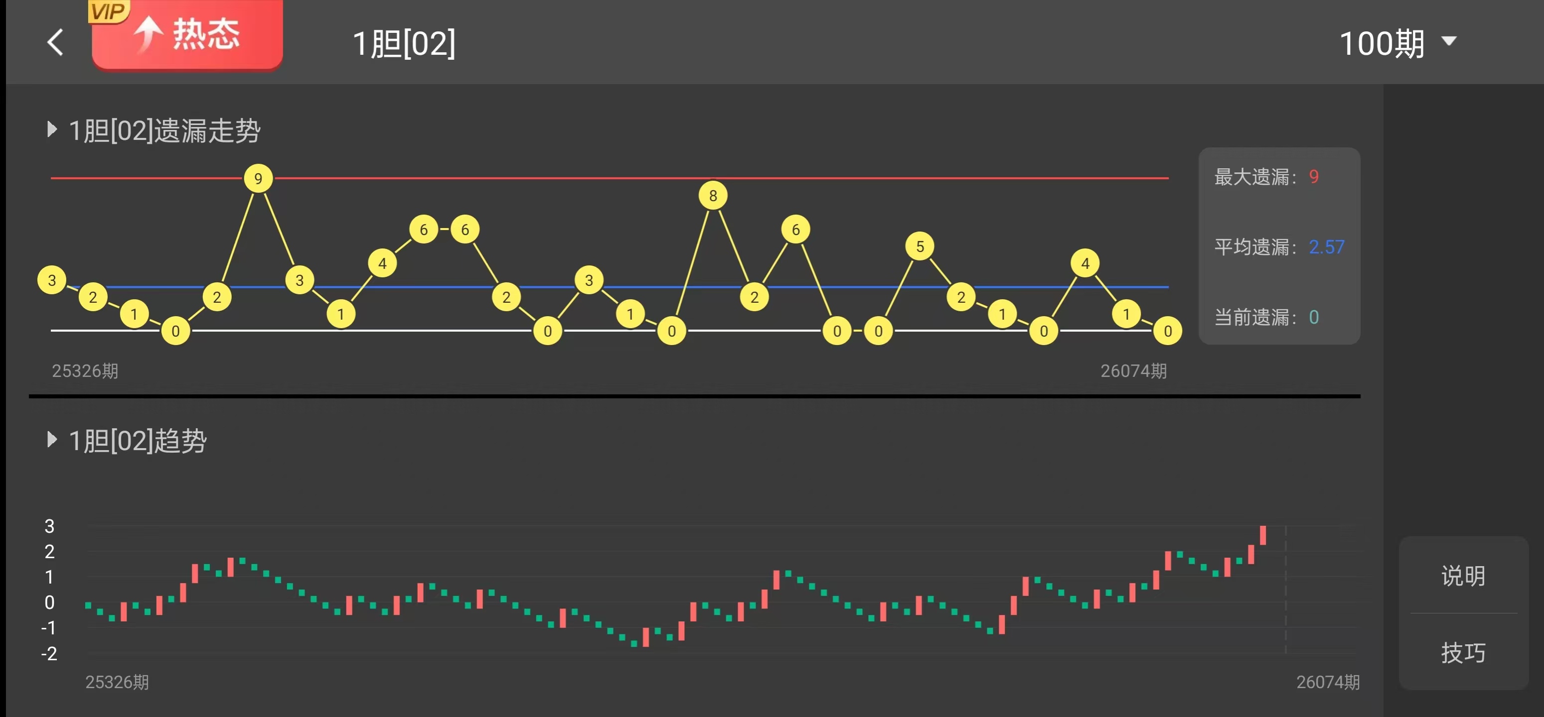 52 处于41-60中后区,该区间在近6期中始终维持5~8枚的出号量,是稳定的“基本盘”,52作为该区间的代表热号,遗漏值从未超过2期,热度持续性强。