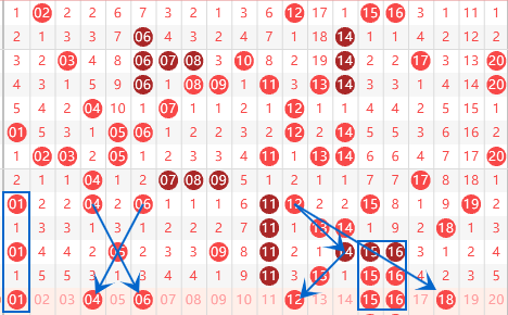 本期的01号数字我们要防守一下,它是属于空一对称号码,本期出号机会还是有的。04 06号数字是属于交叉对称号码,本期我们要注意一下出一个号码的情况。本期的12号数字是属于V型号码,我们可以防守一下,出号机会还是很大的。上期开出了连号空一带号13 15 16号数字,我们要注意一下出重号的情况,重点关注一下15 16走三重的情况。本期的18号数字我们可以关注一下,12 15 18形成了三斜连号码,做防守是最好的。