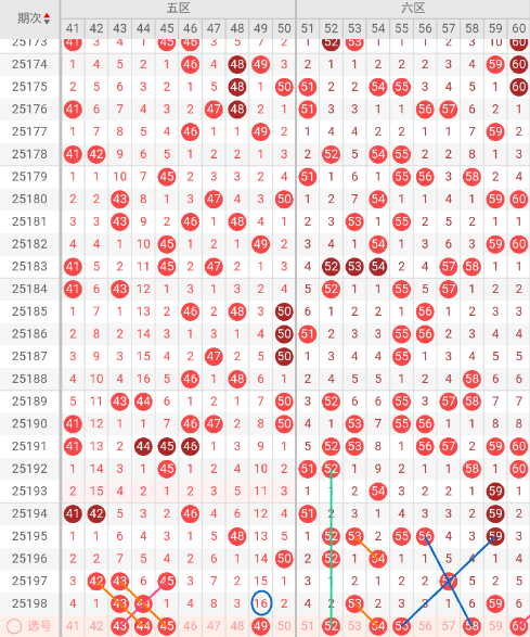 五区开出:43,44 奇偶比: 1:1 和值:87 跨度:1,上期开出2个号码,奇偶数号码均衡。本期三斜连走势:43 44 45,无隔码斜连走势。近5期出号量:3-1-1-3-2,近10期平均出号2.2枚,上期奇偶比2:1,本期推荐关注号码:43、44、45、49。