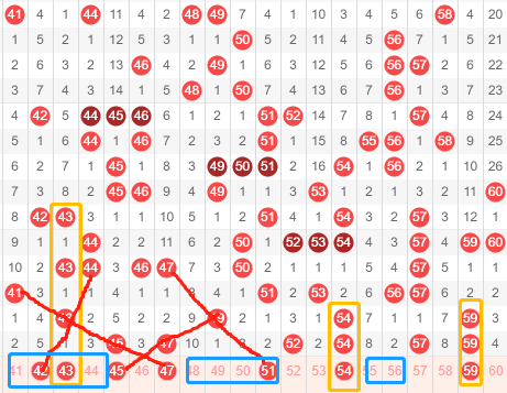 第三区间号码41-60,这一区间上一期虽然开出了六个号码,但并没有我们常见的连号,不连就不热,这是常态。根据快乐八历史开奖来看,这种类型的开奖号码,一般出现重号或者中间号的机会更大一些。