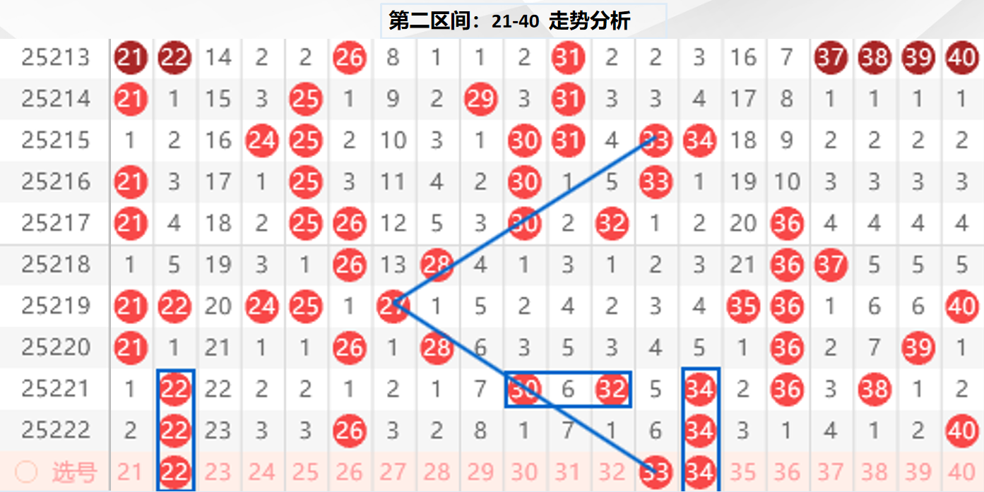 二区分析:【21-40】(走势图标注号码非小黄车大底,请谨慎参考,具体思路将在直播间分享讨论)