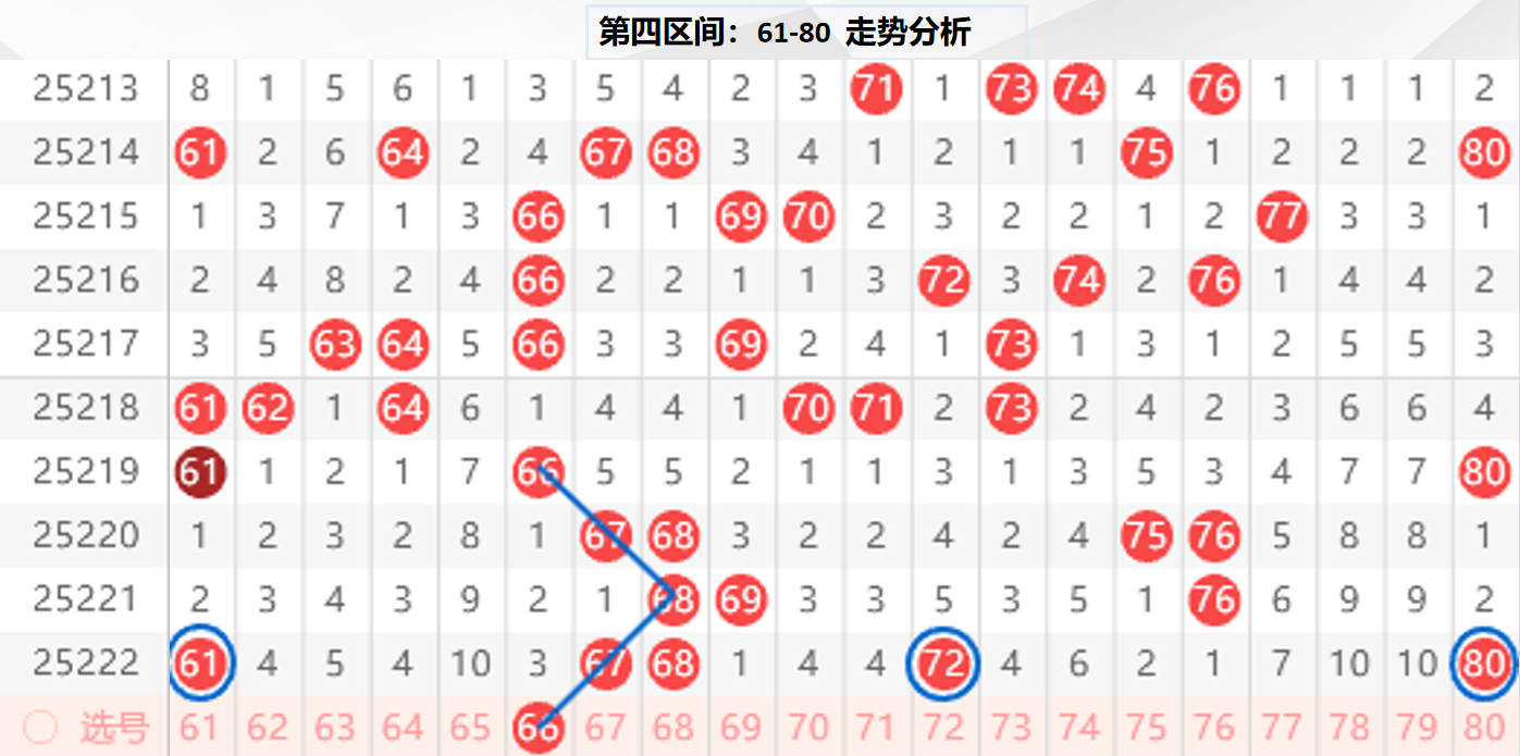 四区分析:【61-80】(走势图标注号码非小黄车大底,请谨慎参考,具体思路将在直播间分享讨论)