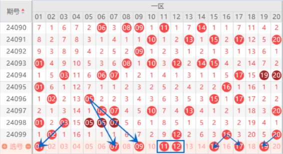 下图为01-20号数字区间走势分析图: