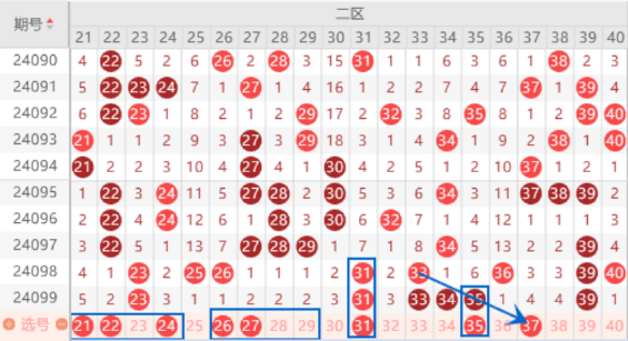 下图为21-40号数字区间走势分析图:
