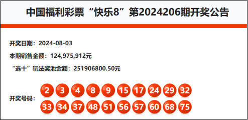 首先我们先来回顾快乐8第2024206期开奖号码: